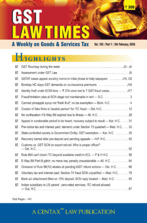 Excise Law Times (E.L.T.), a trusted resource for nearly 50 years, is the premier fortnightly journal covering Excise, Customs, and Exim laws. Each of its 24 annual issues provides essential features: timely notifications, in-depth legislative updates, expert commentary, and comprehensive court judgment summaries—keeping tax professionals, manufacturers, and consultants fully informed. Guided by renowned editor R.K. Jain and published by CENTAX, E.L.T. combines accurate, actionable insights with an organised, easy-to-navigate format, making it helpful for strategic tax planning, compliance, and decision-making.