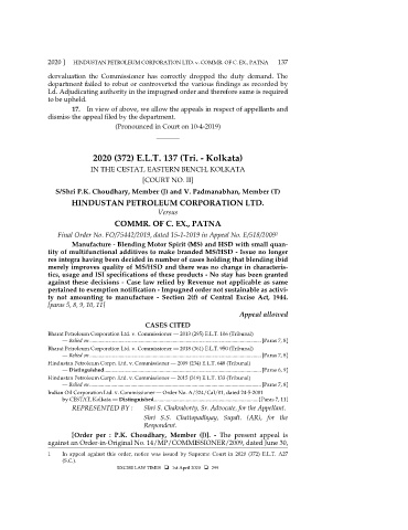 2020 ] HINDUSTAN PETROLEUM CORPORATION LTD. v. COMMR. OF C. EX., PATNA 137
