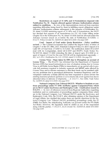 50, dated 3-3-2020 restricting export of 13 APIs and 13 formulations, the DGFT