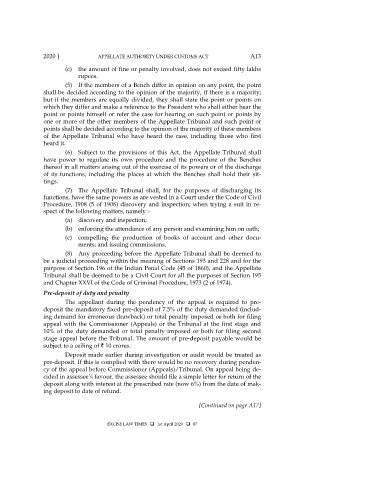 2020 ] APPELLATE AUTHORITY UNDER CUSTOMS ACT A13