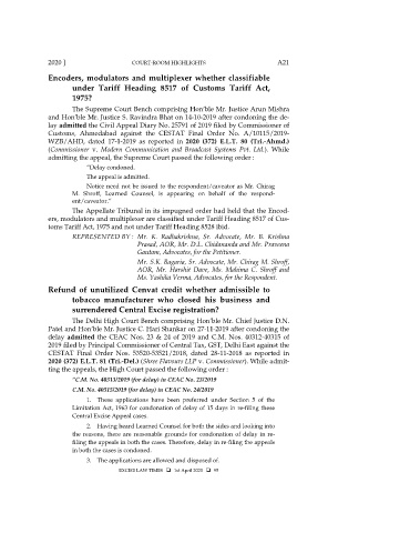 2020 ] COURT-ROOM HIGHLIGHTS A21