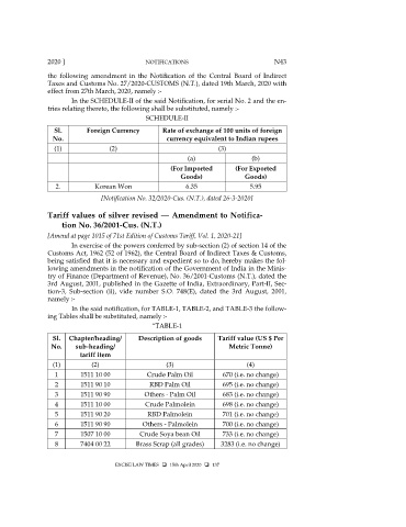 Tariff values of silver revised — Amendment to Notifica-