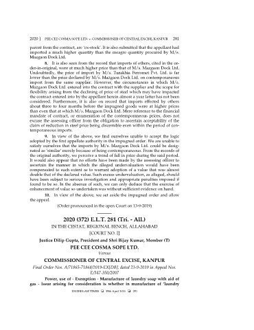 2020 ] PEE CEE COSMA SOPE LTD. v. COMMISSIONER OF CENTRAL EXCISE, KANPUR 281