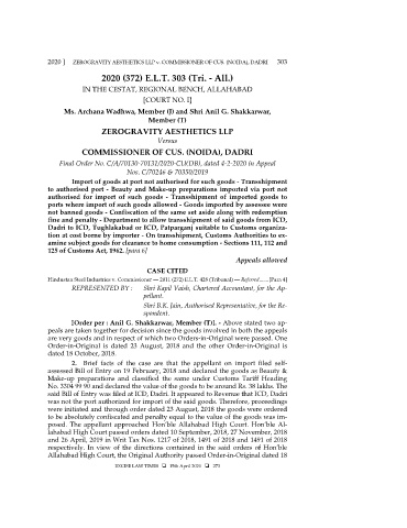 2020 ] ZEROGRAVITY AESTHETICS LLP v. COMMISSIONER OF CUS. (NOIDA), DADRI 303