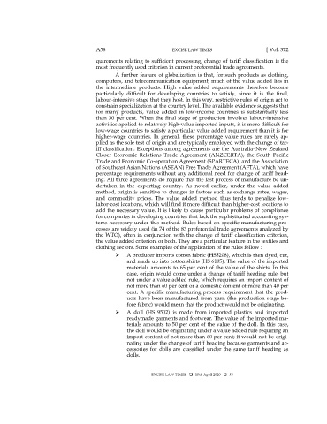 labour-intensive stage that they host. In this way, restrictive rules of origin act to