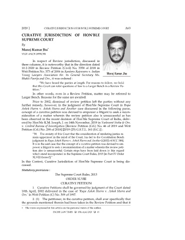 2020 ] CURATIVE JURISDICTION OF HON’BLE SUPREME COURT A63