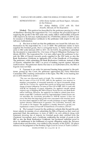 2020 ] WADPACK PRIVATE LIMITED v. DIRECTOR GENERAL OF FOREIGN TRADE 647