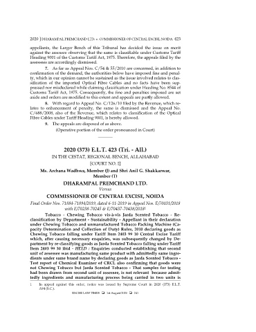 2020 ] DHARAMPAL PREMCHAND LTD. v. COMMISSIONER OF CENTRAL EXCISE, NOIDA 423