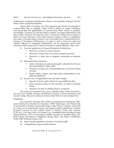 2020 ] INDIAN CUSTOMS LAW — RECOMMENDATIONS FOR A REVAMP A73