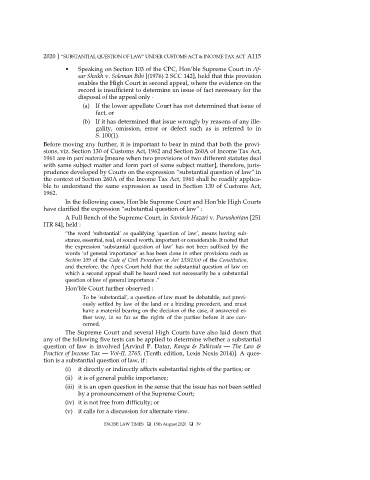 2020 ] “SUBSTANTIAL QUESTION OF LAW” UNDER CUSTOMS ACT & INCOME TAX ACT A115