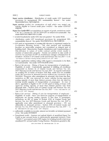 2020 ] SUBJECT INDEX 731