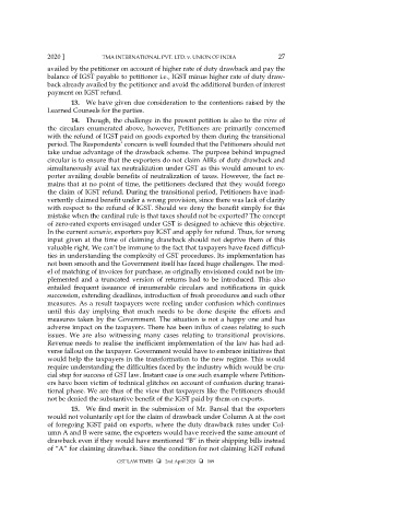 the claim of IGST refund. During the transitional period, Petitioners have inad-