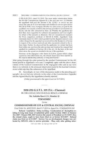 2020 ] TEKNOMEC v. COMMISSIONER OF GST & CENTRAL EXCISE, CHENNAI 135