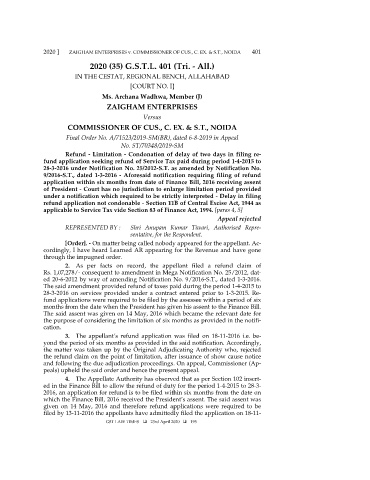 2020 ] ZAIGHAM ENTERPRISES v. COMMISSIONER OF CUS., C. EX. & S.T., NOIDA 401