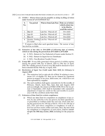 2020 ] ANALYSIS OF RELIEF MEASURES PROVIDED UNDER GST LAW DUE TO COVID-19 J77