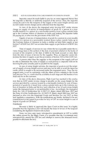 2020 ] IGST ON OCEAN FREIGHT IN CASE OF IMPORT OF GOODS ON CIF BASIS J13