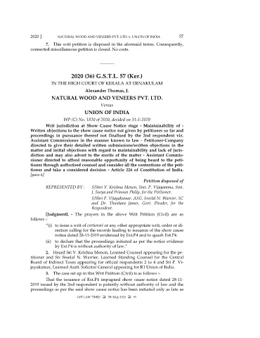 2020 ] NATURAL WOOD AND VENEERS PVT. LTD. v. UNION OF INDIA 57