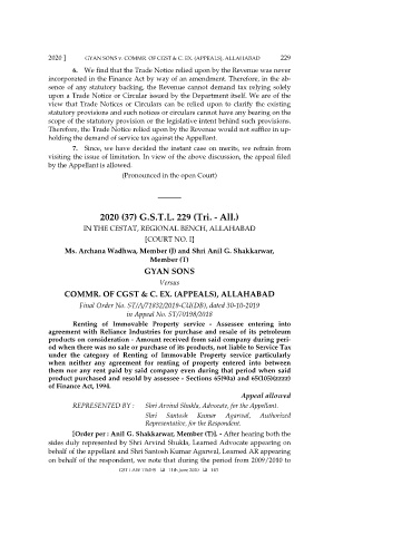 2020 ] GYAN SONS v. COMMR. OF CGST & C. EX. (APPEALS), ALLAHABAD 229