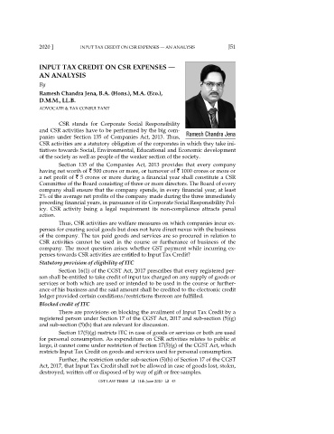 2020 ] INPUT TAX CREDIT ON CSR EXPENSES — AN ANALYSIS J51