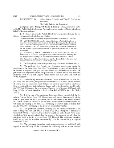 2020 ] RSK INDUSTRIES PVT. LTD. v. UNION OF INDIA 161