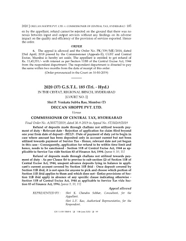 2020 ] DECCAN SHOPPE PVT. LTD. v. COMMISSIONER OF CENTRAL TAX, HYDERABAD 185