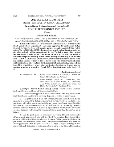 2020 ] RISHI BUILDERS INDIA PVT. LTD. v. STATE OF BIHAR 303