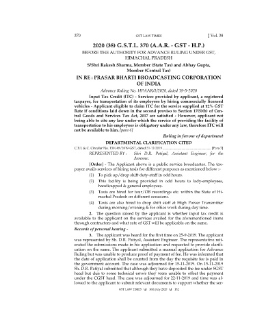 370 GST LAW TIMES [ Vol. 38