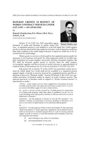 2020 ] BLOCKED CREDITS IN RESPECT OF WORKS CONTRACT SERVICES UNDER GST LAW J69