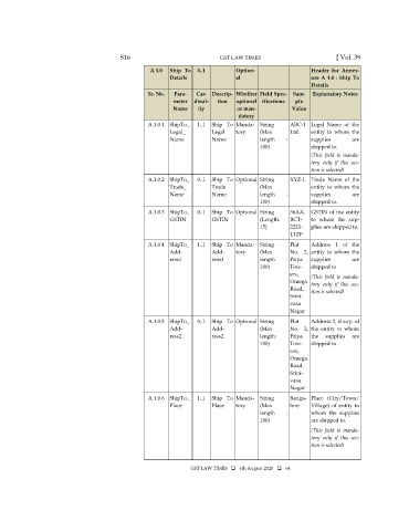 A.1.0.3 ShipTo_ 0..1 Ship To Optional String 36AA- GSTIN of the entity