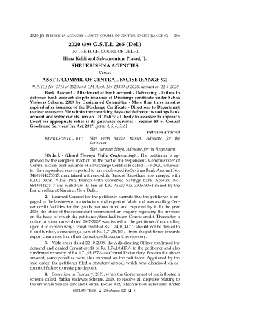 2020 ] SHRI KRISHNA AGENCIES v. ASSTT. COMMR. OF CENTRAL EXCISE (RANGE-92) 265