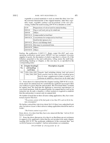 7.6 From above it is derived that the Chapter heading 2309 90 90 is exclu-