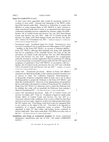 2020 ] SUBJECT INDEX 505