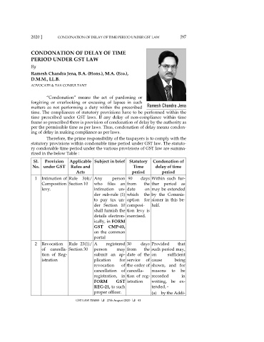 2020 ] CONDONATION OF DELAY OF TIME PERIOD UNDER GST LAW J97